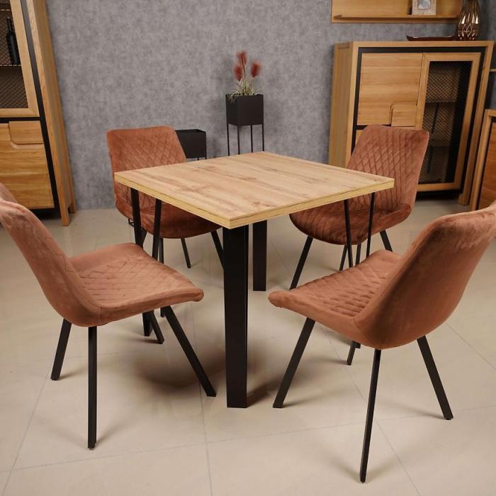Stół Karlos 100x100 łączy minimalistyczny, nowoczesny design z wygodą użytkowania. Kwadratowy blat sprawia, że stół idealnie wpasuje się w mniejsze przestrzenie, oferując komfortowe miejsce dla 4 osób. Świetnie sprawdzi się zarówno w kuchni, jak i w jadalni.