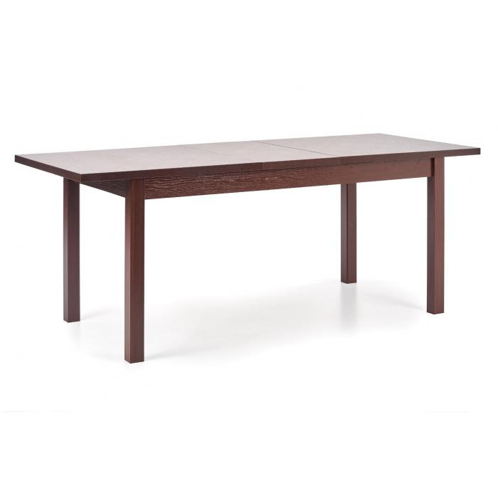 stół rozkładany, wymiary: 118÷158/75/76 cm, materiał: blat - płyta laminowana, na obrzeżach ABS, nogi – MDF laminowany,kolor: ciemny orzech