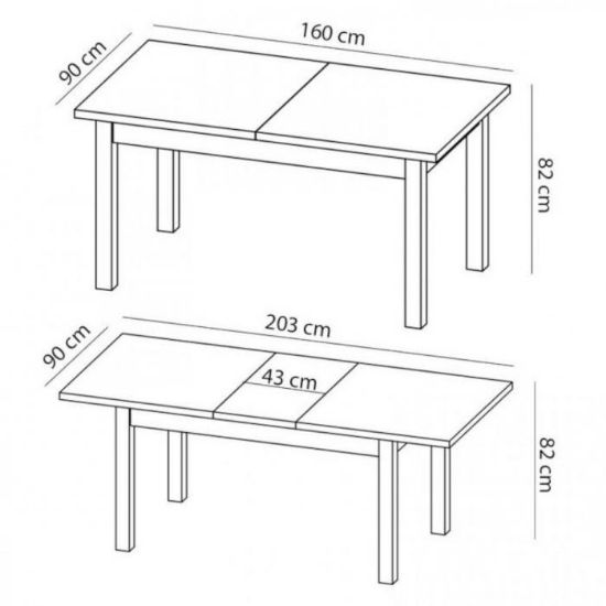Stół Kora ST został wyposażony w rozkładany blat, który przed rozłożeniem ma długość 160 cm, a po rozłożeniu aż 203 cm. To praktyczne rozwiązanie pozwala dostosować powierzchnię stołu do liczby osób i charakteru spotkania. Niezależnie od tego, czy planujesz rodzinny obiad, czy kolację z przyjaciółmi, stół Kora ST oferuje odpowiednią przestrzeń dla wszystkich.