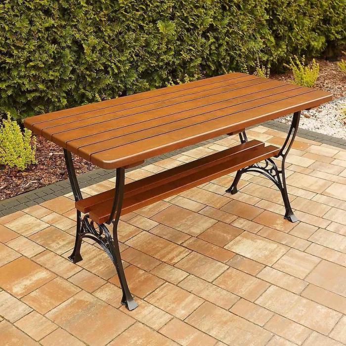 Stół ogrodowy Królewski to stół, który idealnie wpasuje się w design ogrodu, balkonu czy tarasu. Wykorzystany materiał to aluminium i drewno olchowe, co sprawia, że jest solidny i wytrzymały. Odporny na promieniowanie UV i niekorzystne warunki atmosferyczne. Drewno jest dwukrotnie zaimpregnowane, natomiast aluminium pomalowane jest proszkowo farbą antykorozyjną.