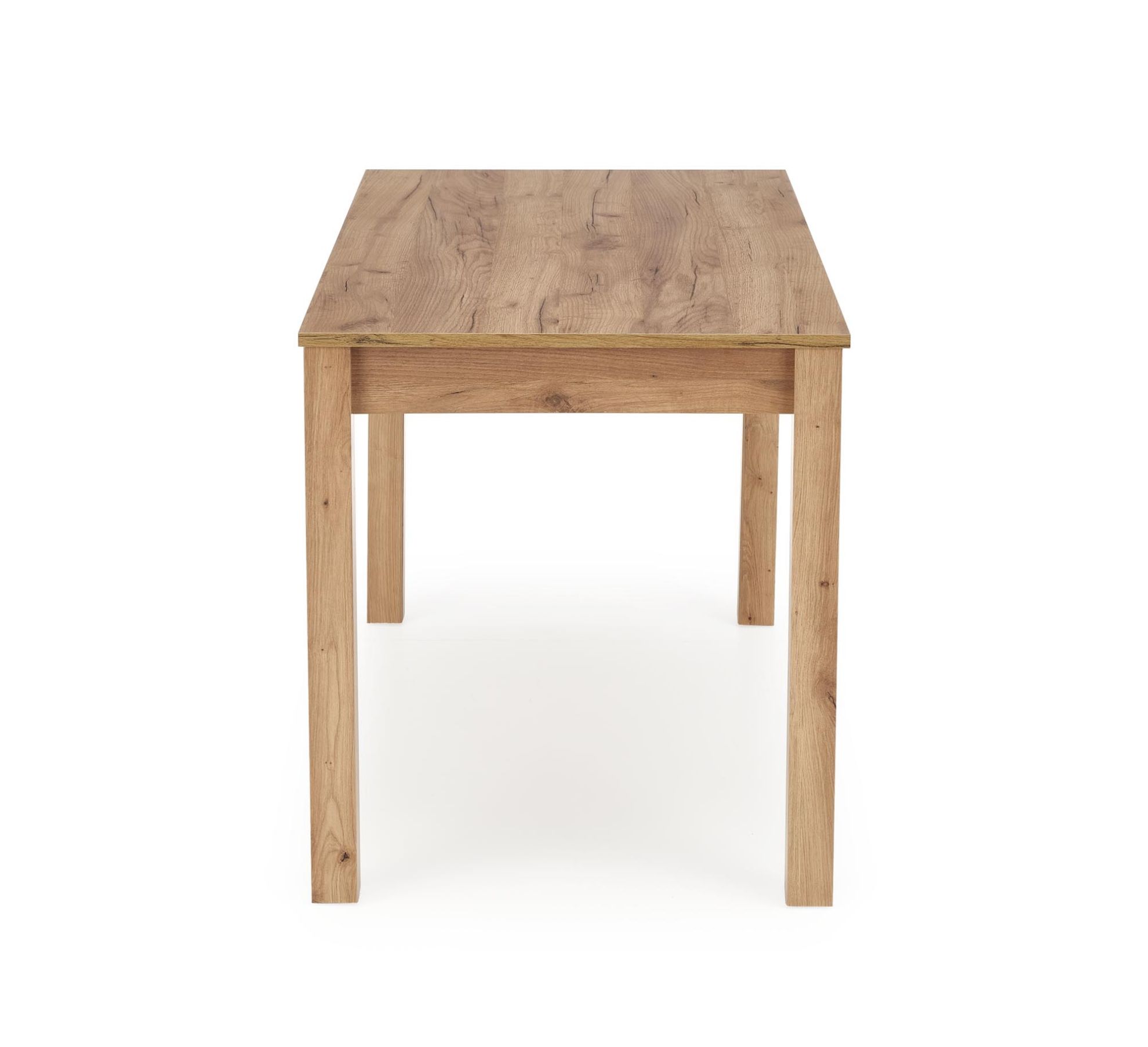 Blat stołu wykonany jest z trwałej płyty laminowanej, która jest łatwa do utrzymania w czystości i odporna na codzienne ścieranie. Obrzeża blatów zabezpieczone są specjalnym materiałem ABS, co zwiększa ich wytrzymałość i chroni przed ewentualnymi uszkodzeniami. Kolor dąb craft nadaje blatu stołu naturalny wygląd drewna, dodając przytulności i ciepła do Twojego wnętrza.