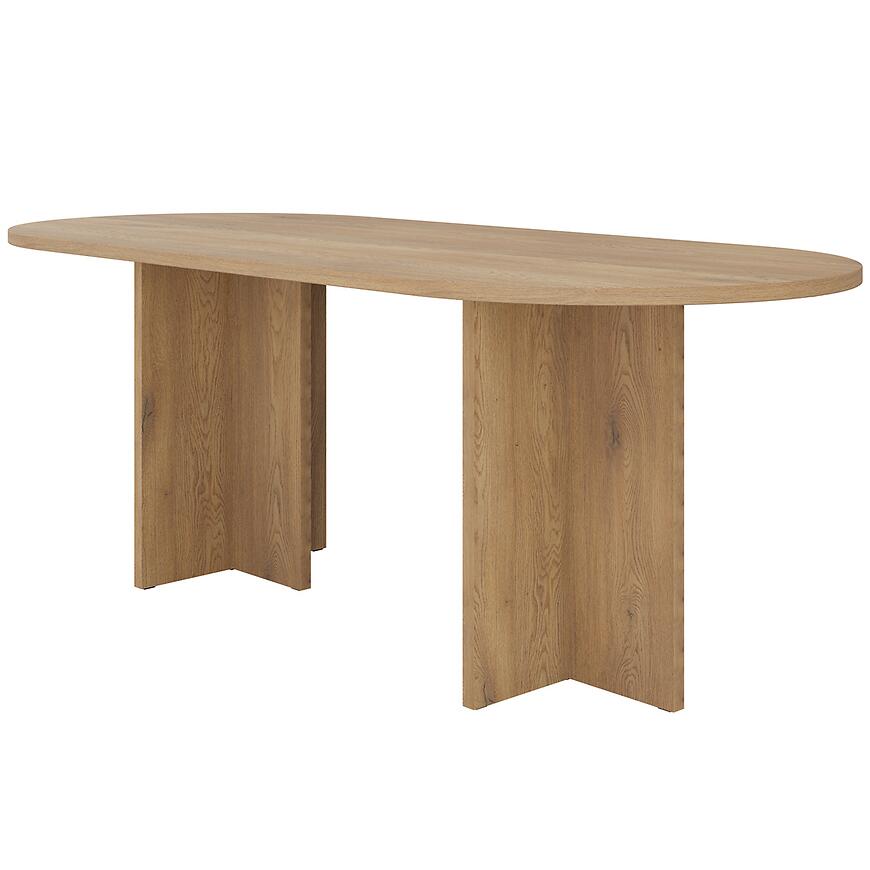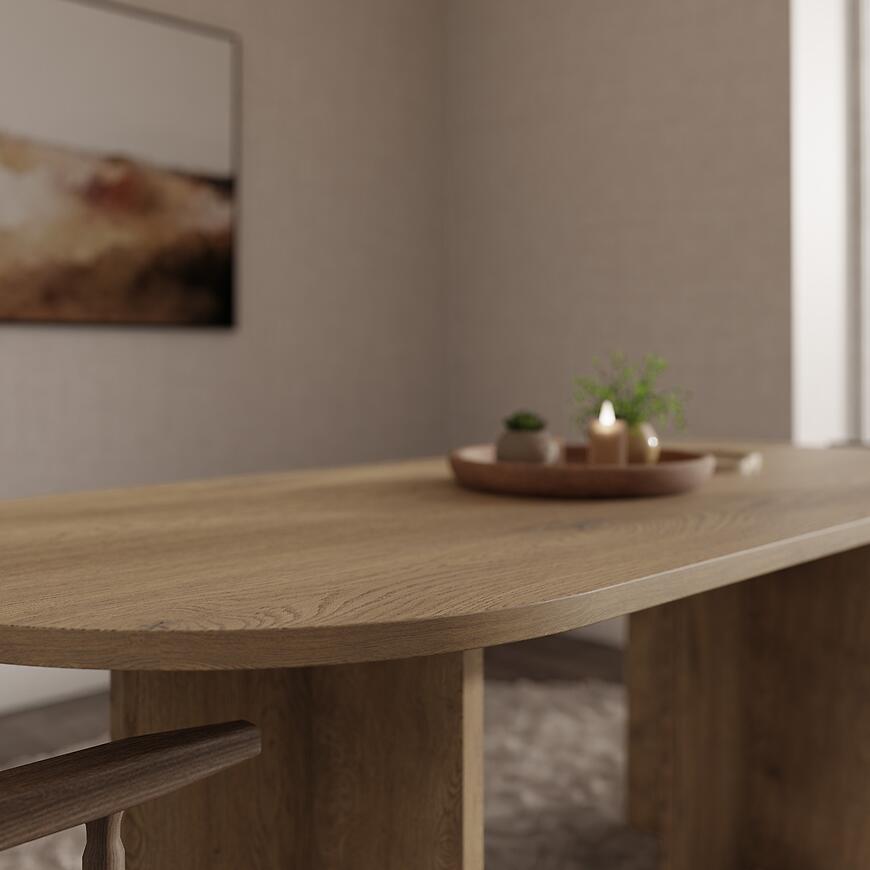 Stół Loen 204x90 cm w kolorze dąb cremona to propozycja dla osób, które cenią minimalistyczne formy i funkcjonalne rozwiązania w aranżacji wnętrz. Dzięki owalnemu blatowi i matowemu wykończeniu doskonale wpisuje się w nowoczesne przestrzenie, dodając im lekkości i elegancji. To idealny stół do jadalni, salonu lub otwartej kuchni, gdzie liczy się zarówno estetyka, jak i wygoda użytkowania.