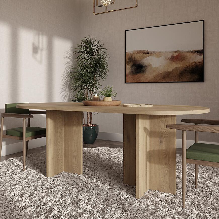 Stół Loen świetnie sprawdzi się zarówno jako stół do jadalni, jak i duży stół do salonu. Jego neutralna forma pozwala łatwo dopasować go do różnych aranżacji – od minimalistycznych po bardziej wyraziste wnętrza. To mebel, który dobrze komponuje się z nowoczesnymi krzesłami, tworząc spójną przestrzeń do wspólnego spędzania czasu.