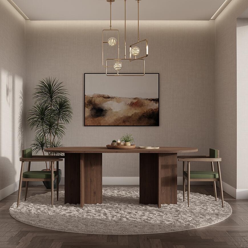 Stół Loen świetnie sprawdzi się zarówno jako stół do jadalni, jak i duży stół do salonu. Jego neutralna forma pozwala łatwo dopasować go do różnych aranżacji – od minimalistycznych po bardziej wyraziste wnętrza. To mebel, który dobrze komponuje się z nowoczesnymi krzesłami, tworząc spójną przestrzeń do wspólnego spędzania czasu.