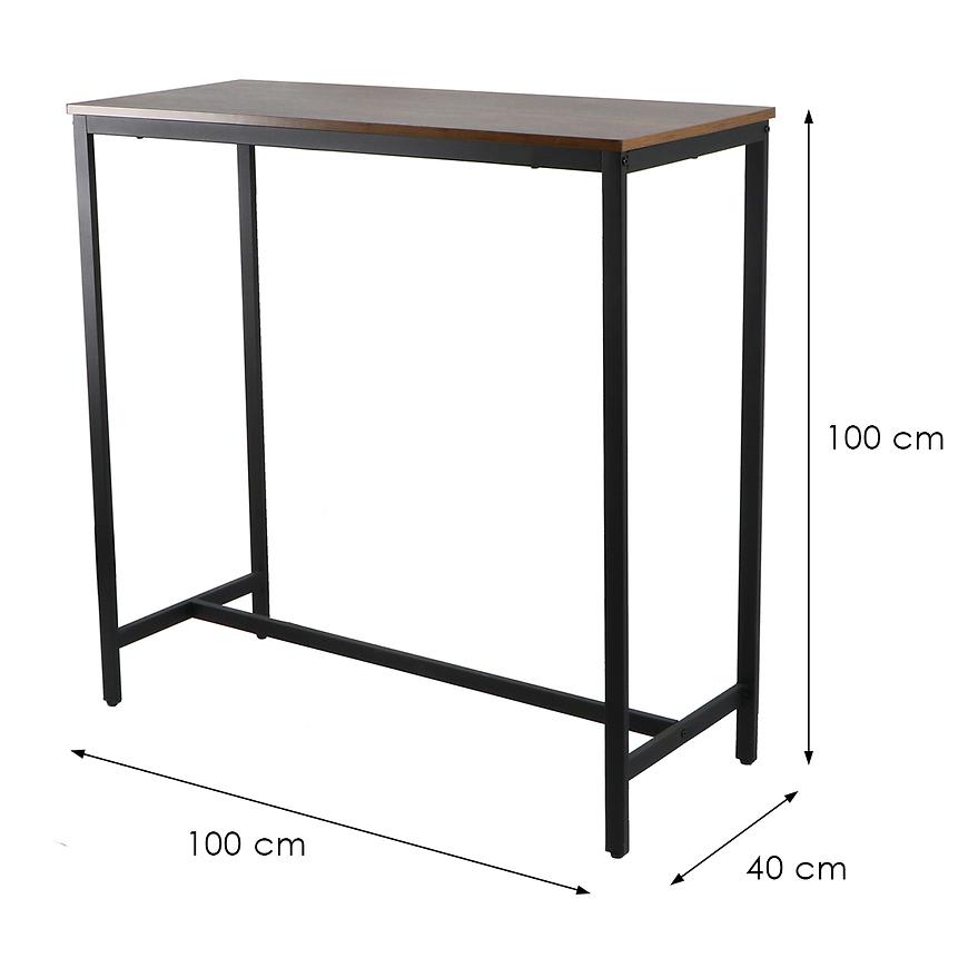 Solidny metalowy stelaż w kolorze czarnym dodaje stołowi surowości i stabilności, podkreślając jego industrialny charakter. Wysokość stołu wynosząca 100 cm sprawia, że jest on idealny do stworzenia nowoczesnej strefy barowej w kuchni, salonie lub w przestrzeni komercyjnej.