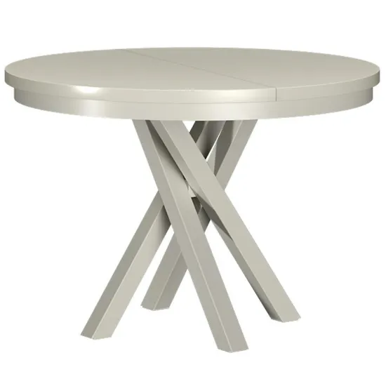 Okrągły blat wykonany z trwałej, laminowanej płyty wiórowej w modnym, matowym wykończeniu w kolorze kaszmiru nadaje wnętrzu elegancki, subtelny charakter. Stabilna podstawa z metalu zapewnia solidność konstrukcji oraz nowoczesny wygląd, który doskonale komponuje się z różnorodnymi aranżacjami wnętrz.