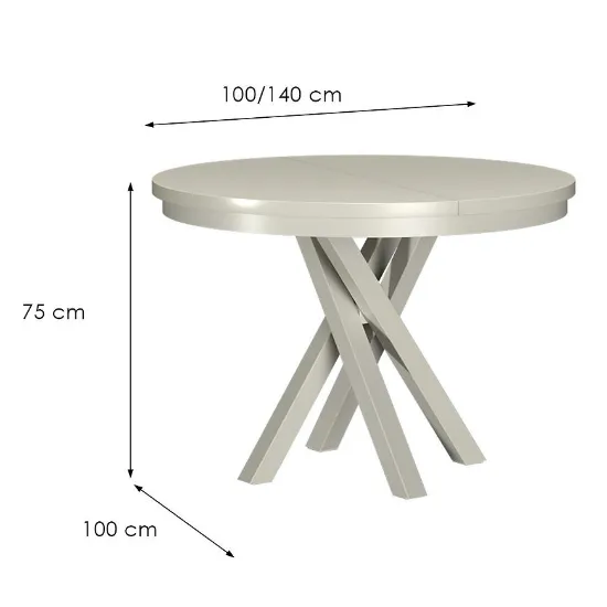 Stół Malumi ma wymiary 100 × 100 cm przed rozłożeniem, a po rozsunięciu osiąga długość 140 cm, co pozwala na komfortowe przyjęcie dodatkowych gości. System rozkładania blatu jest intuicyjny i szybki, dzięki czemu z łatwością dopasujesz stół do aktualnych potrzeb.