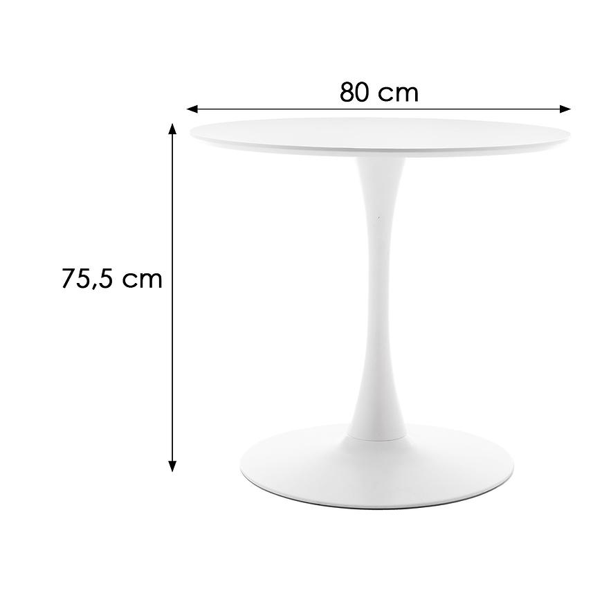 Stół Marseille White to idealne połączenie nowoczesnego stylu i funkcjonalności, które doskonale sprawdzi się w każdej jadalni, kuchni czy salonie. Okrągły blat o średnicy 80 cm wykonany z wysokiej jakości płyty MDF w matowym wykończeniu zapewnia estetyczny wygląd oraz trwałość użytkowania.
