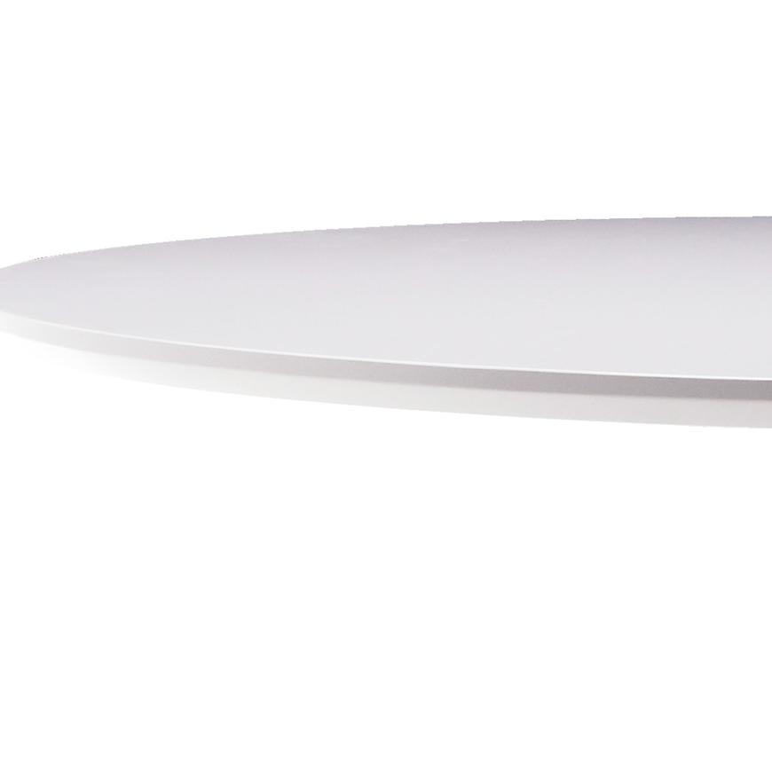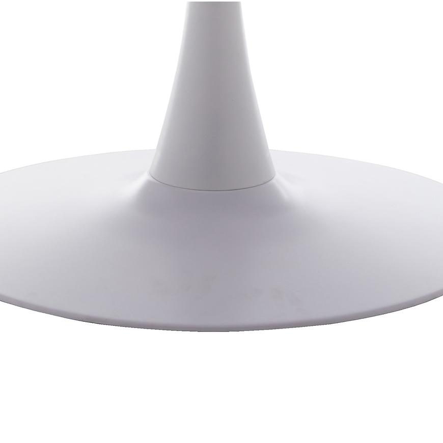 Biały kolor blatu wprowadza do wnętrza lekkość i optycznie powiększa przestrzeń, dzięki czemu stół pasuje zarówno do małych, jak i większych pomieszczeń. Stabilna konstrukcja oparta na metalowym stelażu gwarantuje solidność i długowieczność mebla, a wysokość 75,5 cm zapewnia komfortowe użytkowanie na co dzień.