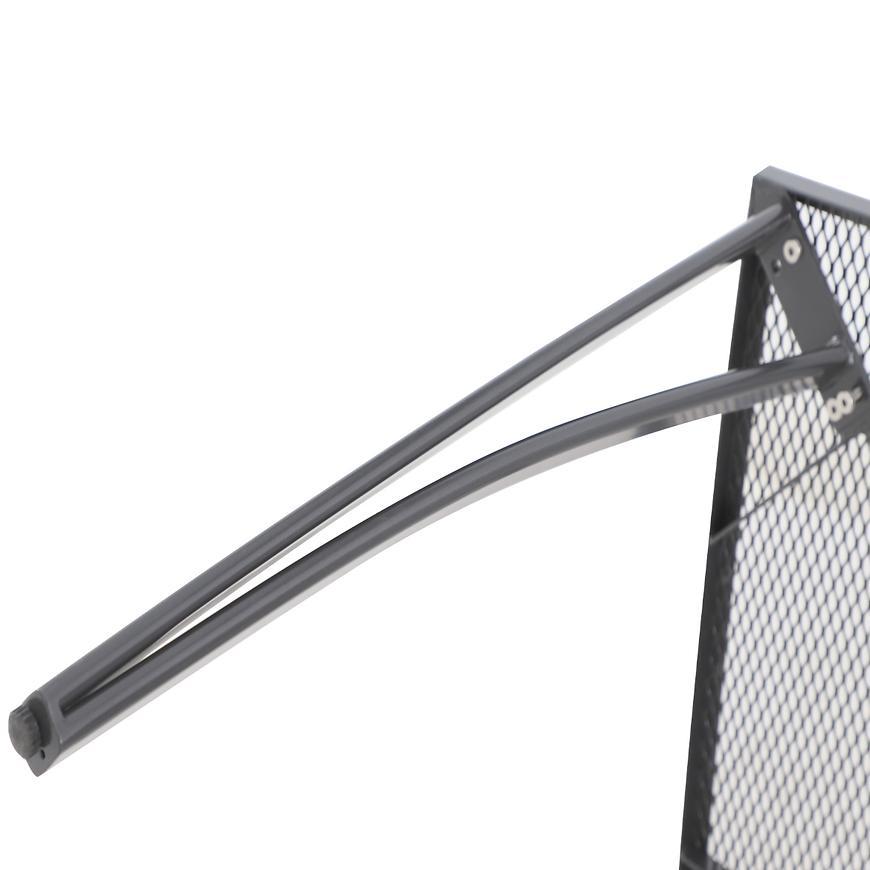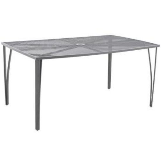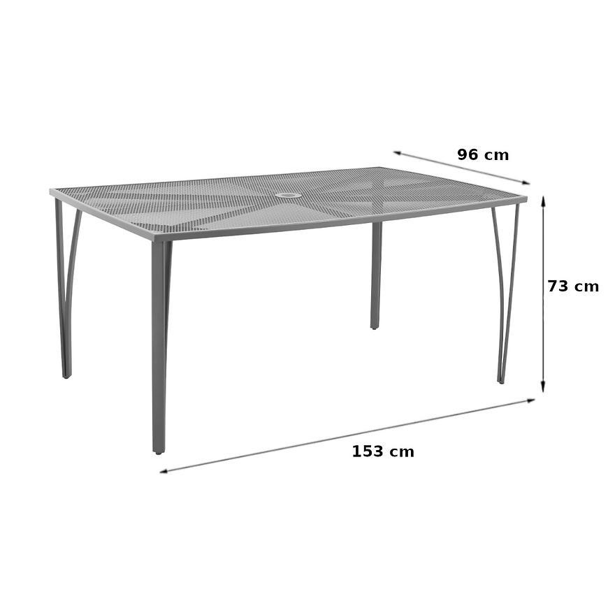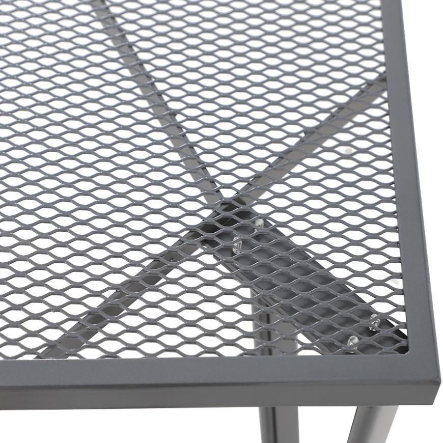 Uniwersalny prostokątny stół, dzięki temu, że jest metalowy, jest stołem wielosezonowym. Posiada antypoślizgowe nakładki, które zapewniają stabilność. Blat jest siatkowany. Metalowa rama została pomalowana proszkowo, dzięki temu stolik jest gładki i błyszczący.