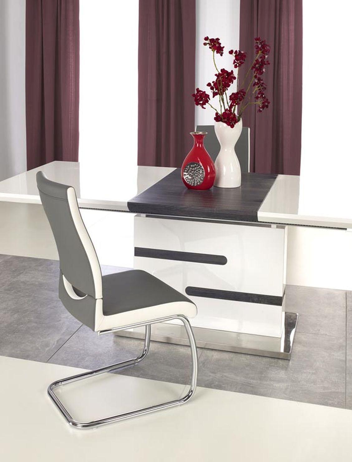 Blat stołu wykonany został z wysokiej jakości materiału, który gwarantuje trwałość i łatwość w utrzymaniu czystości. Biały kolor blatu dodaje przestronności i optycznie rozjaśnia pomieszczenie, wprowadzając do niego świeżość i lekkość. Duża powierzchnia blatu pozwoli na swobodne korzystanie z niego podczas spożywania posiłków, pracy czy też rozrywki.