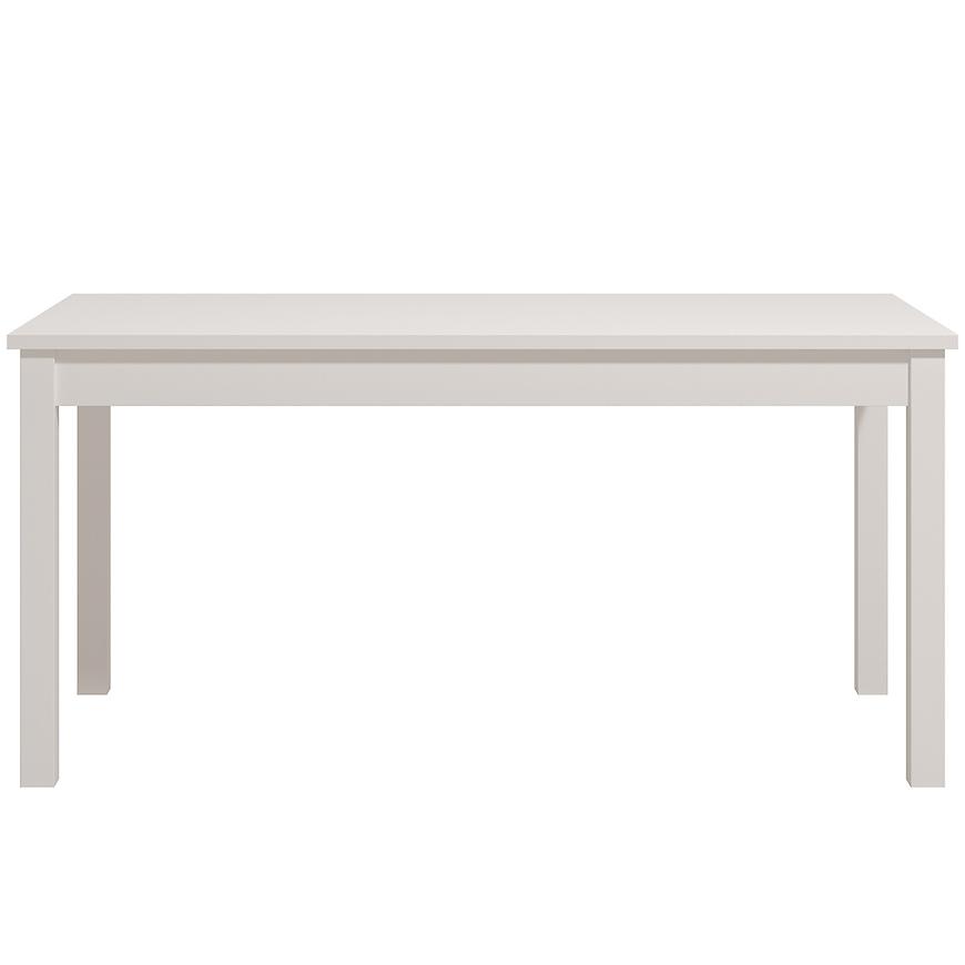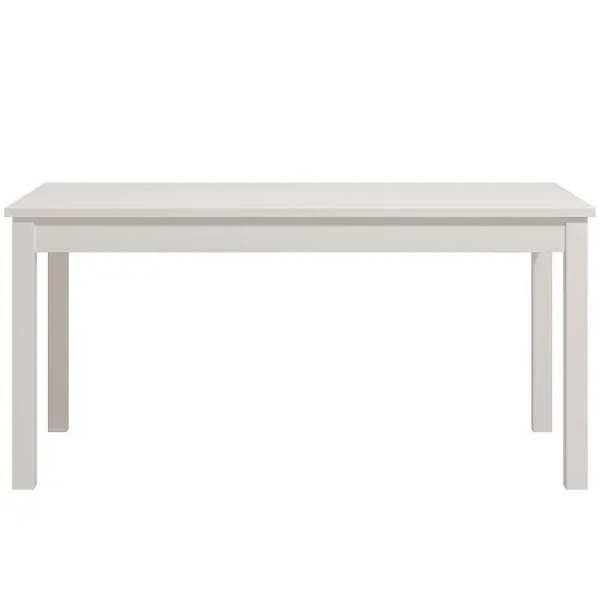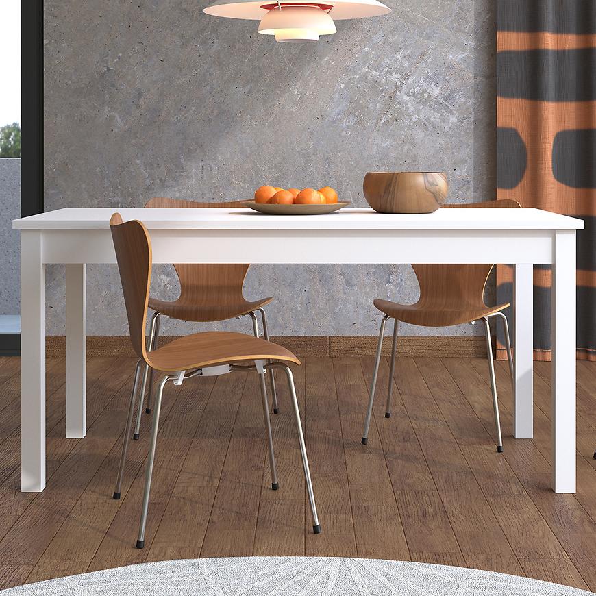 Wykonany z trwałych materiałów – stelaż oraz blat z laminowanej płyty wiórowej – gwarantuje stabilność i odporność na codzienne użytkowanie. Matowe wykończenie w eleganckim, białym kolorze nadaje całości nowoczesny i lekki charakter, który świetnie wpisuje się w aranżacje w stylu minimalistycznym, skandynawskim czy loftowym.