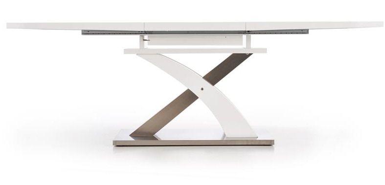 Wymiary stołu Nemo to 160–220 cm długości, 90 cm szerokości oraz 77 cm wysokości, co czyni go uniwersalnym wyborem zarówno do przestronnych jadalni, jak i bardziej kompaktowych wnętrz. Lakierowana powierzchnia blatu jest łatwa w utrzymaniu czystości, co zwiększa komfort codziennego użytkowania.