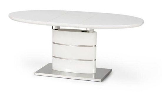 Prosta, klasyczna bryła stołu podkreslona została połączeniem białego koloru ze stalowymi wstawkami. Takie stylowe połączenie świetnie wpisze się w nowoczesne aranżacje.