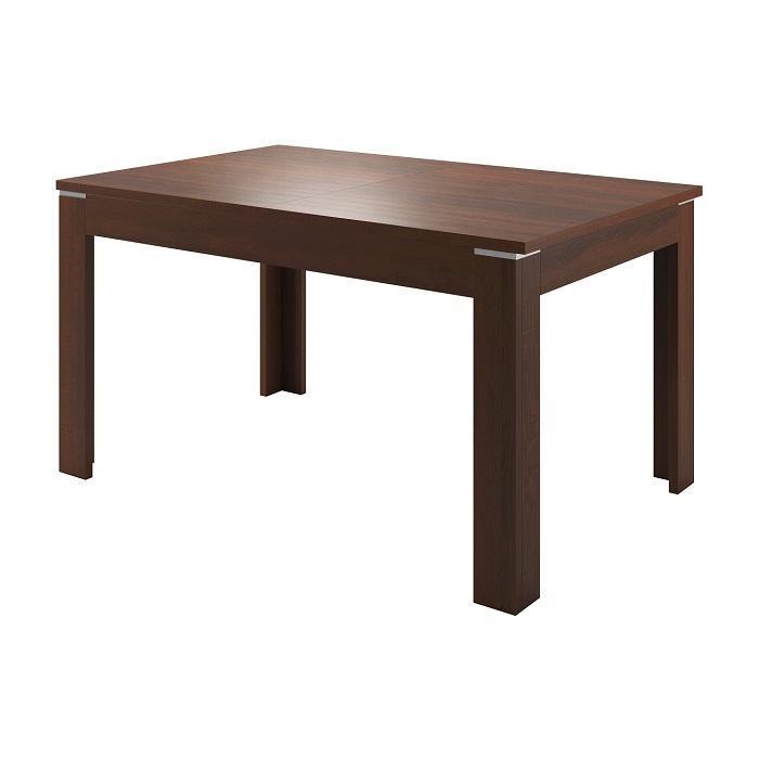 Nogi u góry wykończono ozdobnymi elementami w kolorze szarym. Dwuczęściowy rozsuwany blat o grubości 22 mm został wykonany z solidnej, trwałej płyty laminowanej. Stół w wersji złożonej ma szerokość 90 cm i długość 140 cm. Dzięki 40-centymetrowej wkładce, będącej w wyposażeniu dodatkowym, stół można przedłużyć do 180 cm i wygodnie pomieścić przy nim większą liczbę biesiadników. Stół Nora będzie się dobrze prezentował we wnętrzach urządzonych nowocześnie i oszczędnie: jako centralny punkt jadalni, kuchni, a także w biurze. Mebel dostarczany jest w częściach wraz z instrukcją do samodzielnego montażu.