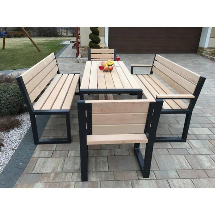 Stół idealnie wpasuje się w design ogrodu, balkonu czy tarasu. Wykorzystany materiał to elementy stalowe i drewniane listwy olchowe o przekroju 40x100mm, co sprawia, że stół jest wytrzymały i solidny. Profile stalowe są ocynkowane i malowane proszkowo. Dodatkowo stół wyposażono w płaskowniki, które uniemożliwiają wygięcia się elementów drewnianych.