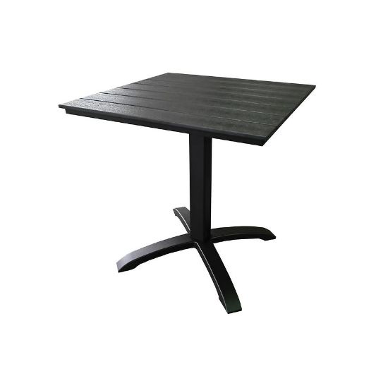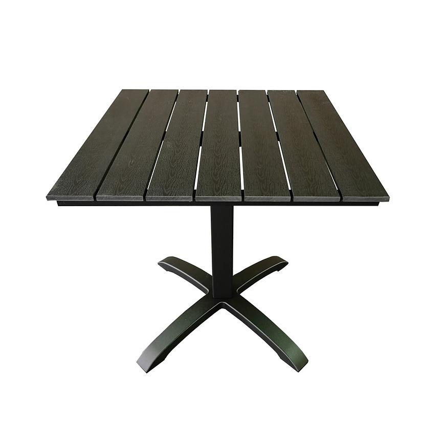 Stelaż stołu wykonany jest z aluminium, malowanego na czarny kolor, co nie tylko gwarantuje solidność, ale także odporność na warunki atmosferyczne. To doskonałe rozwiązanie dla osób poszukujących trwałego mebla ogrodowego.