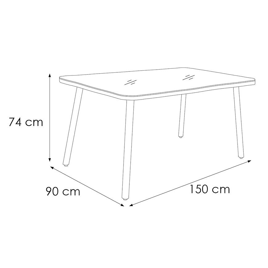 - Przestronny blat 150x90 cm – idealny do wspólnych posiłków i relaksu na świeżym powietrzu.