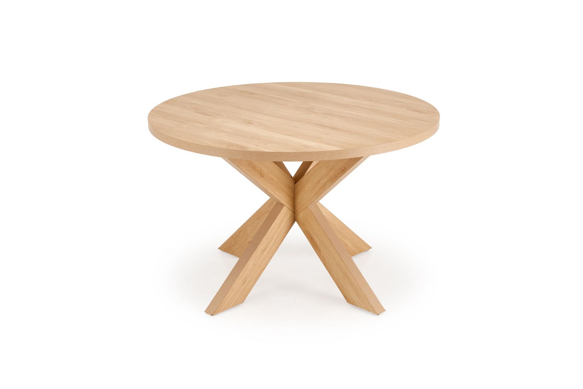 Stabilna konstrukcja oparta na czterech nogach wykonanych z MDF gwarantuje trwałość oraz estetyczny wygląd. Wymiary fi 120/75 cm sprzyjają komfortowi podczas posiłków i spotkań. Naturalna kolorystyka blatu i nóg pozwala dopasować stół do jasnych, przytulnych oraz nowoczesnych aranżacji wnętrz.