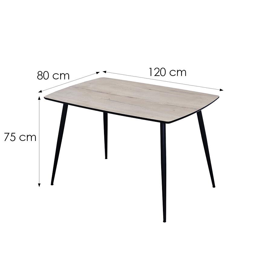 Dzięki wymiarom 120×80 cm blat oferuje wystarczającą przestrzeń do spożywania posiłków, pracy lub codziennego użytkowania. Wysokość 75 cm zapewnia wygodę przy standardowych krzesłach, umożliwiając komfortowe siedzenie i użytkowanie stołu.