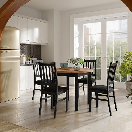 Stół ma wysokość 77 cm i szerokość 90 cm, a jego okrągły blat o średnicy 90 cm zapewnia optymalną powierzchnię do codziennych posiłków oraz spotkań z najbliższymi. Dzięki takiej formie, Perla jest idealnym rozwiązaniem do kameralnych wnętrz, gdzie każdy centymetr ma znaczenie, a okrągły kształt blatu sprzyja lepszej interakcji między osobami siedzącymi przy stole. Co istotne, stół nie posiada funkcji rozkładania, co podkreśla jego prosty i zgrabny charakter.