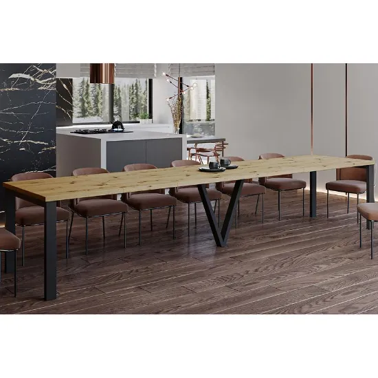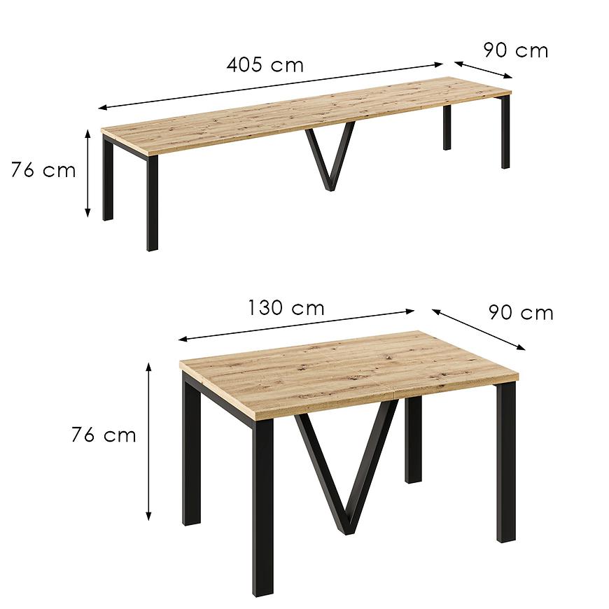 Stół rozkładany Titan 130–405 cm Dąb Artisan to imponujący mebel stworzony z myślą o dużych przestrzeniach i wyjątkowych okazjach. Jego największym atutem jest możliwość rozłożenia aż do 405 cm długości, co czyni go idealnym wyborem na rodzinne uroczystości, przyjęcia czy spotkania w większym gronie.