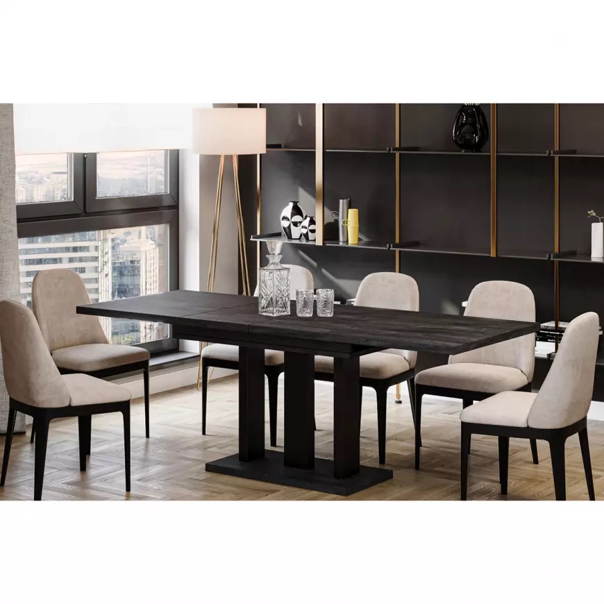 Stół rozkładany Appia-210 w wybarwieniu beton ciemny to nowoczesny i elegancki mebel, który wprowadzi do wnętrza wyjątkowy charakter. Wykonany z wysokiej jakości płyty wiórowej laminowanej, stół cechuje się trwałością i estetyką.