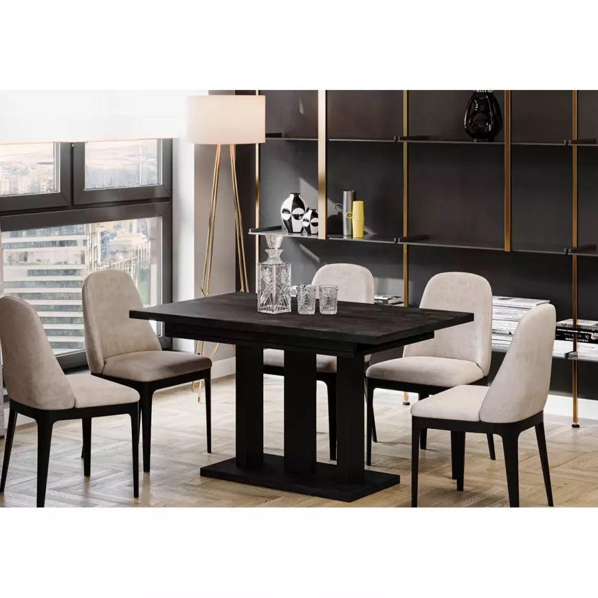 Stół Appia-210 wyposażony jest w funkcję rozkładania, co pozwala na szybkie i wygodne powiększenie powierzchni blatu – to świetne rozwiązanie na rodzinne obiady czy spotkania z przyjaciółmi. Prostokątny kształt blatu zapewnia wygodę i funkcjonalność, a jego matowe wykończenie dodaje elegancji i ułatwia codzienną pielęgnację, sprawiając, że stół długo pozostaje estetyczny i odporny na drobne zarysowania.