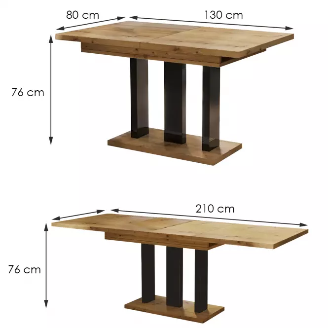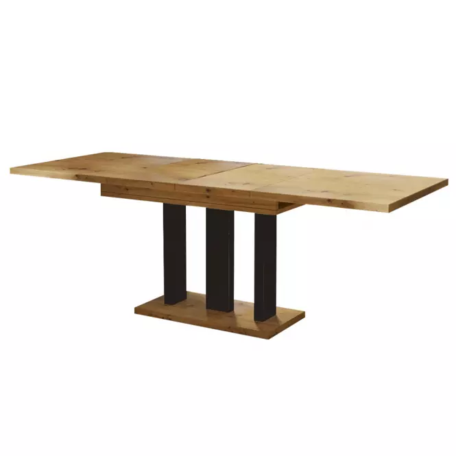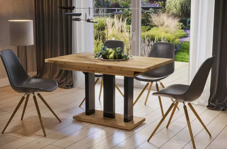 Appia-210 w kolorze dębu artisan to doskonały wybór dla osób, które poszukują praktycznego i stylowego mebla o naturalnym wyglądzie. Ciepły odcień dębu w połączeniu z czarnymi nogami nadaje wnętrzu wyjątkowy klimat i przytulność, sprawiając, że stół staje się nie tylko miejscem wspólnych posiłków, ale i dekoracyjnym centrum salonu czy jadalni.