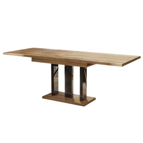 Stół rozkładany Appia-210 w wybarwieniu dąb wotan to nowoczesny i elegancki mebel, który wprowadzi do wnętrza ciepło naturalnego drewna i wyjątkowy charakter. Wykonany z wysokiej jakości płyty wiórowej laminowanej, stół cechuje się trwałością i estetyką. Jasne, drewnopodobne wykończenie blatu z wyczuwalną strukturą dębu wotan dodaje przytulności każdej przestrzeni, idealnie wpisując się w styl nowoczesny z nutą naturalności.