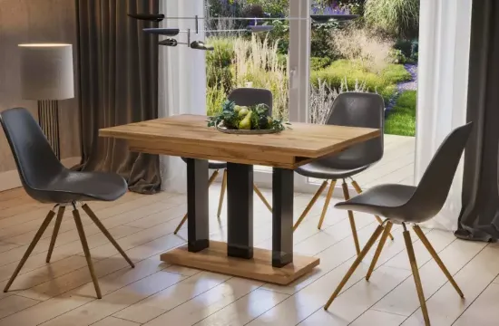 Appia-210 w kolorze dębu wotan to doskonały wybór dla osób, które poszukują praktycznego i stylowego mebla o naturalnym wyglądzie. Ciepły odcień dębu w połączeniu z czarnymi nogami nadaje wnętrzu wyjątkowy klimat i przytulność, sprawiając, że stół staje się nie tylko miejscem wspólnych posiłków, ale i dekoracyjnym centrum salonu czy jadalni.