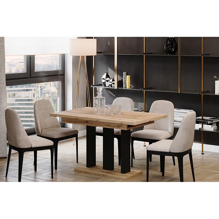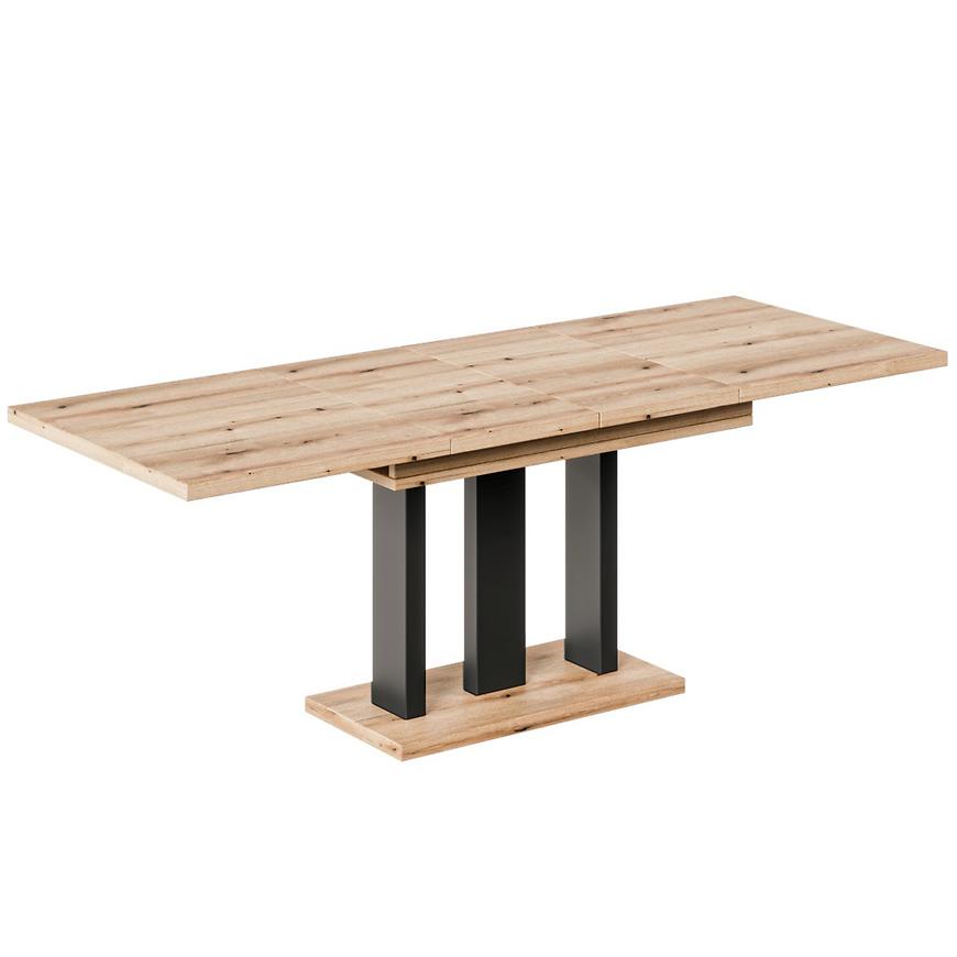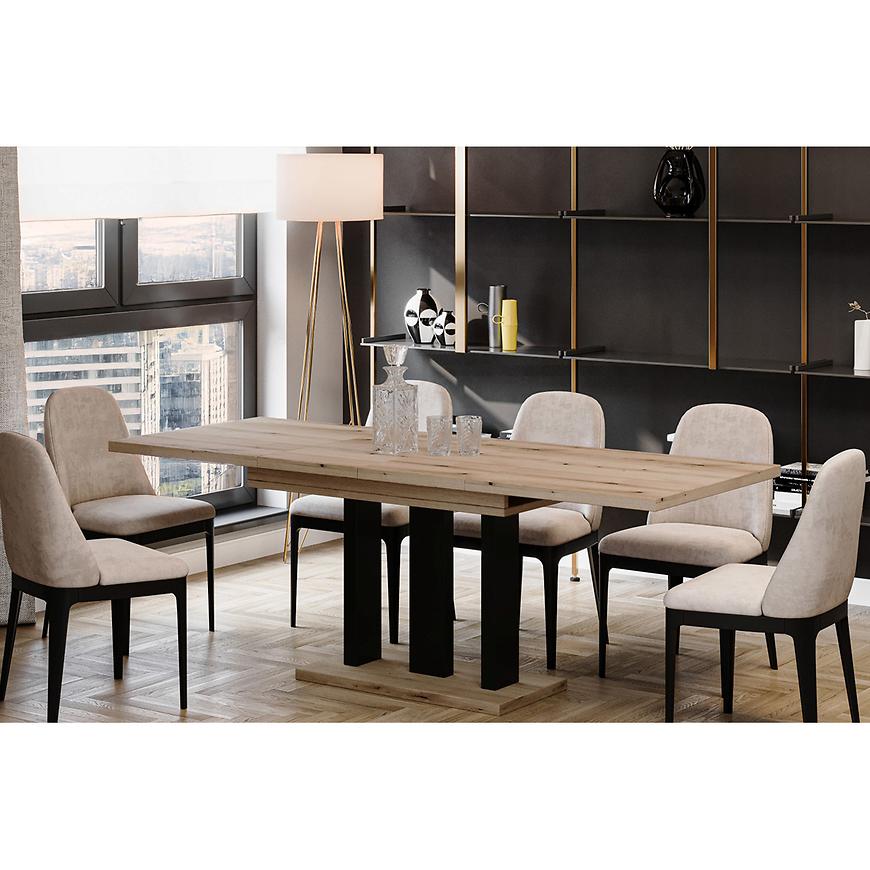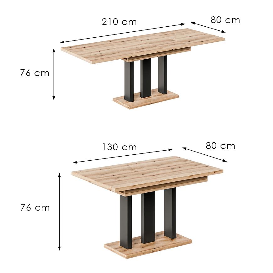 Stół rozkładany Appia Black 130/210x80 – dąb evoke/czarny mat to elegancki i funkcjonalny mebel, idealny do nowoczesnych wnętrz. Dzięki prostokątnemu, matowemu blatu w odcieniu dąb evoke oraz solidnej podstawie w kolorze czarnym matowym, doskonale komponuje się w minimalistycznych oraz skandynawskich aranżacjach kuchni czy jadalni.