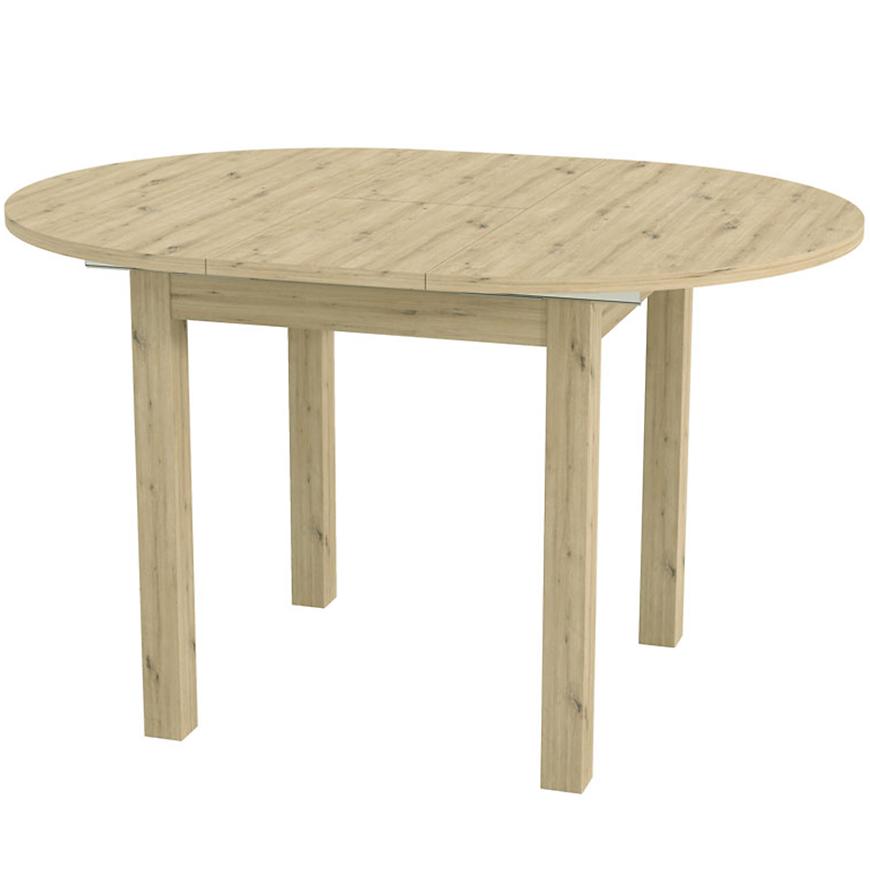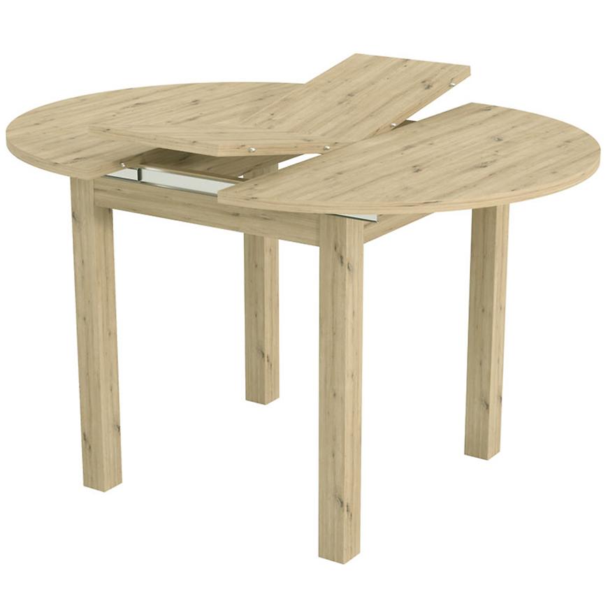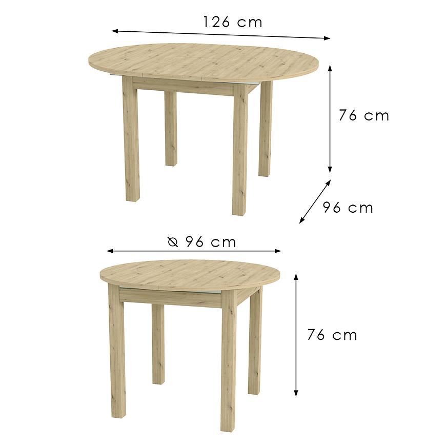 Okrągły blat o średnicy 96 cm można szybko i wygodnie powiększyć do długości 126 cm, co czyni go praktycznym rozwiązaniem podczas spotkań rodzinnych czy towarzyskich. Matowe wykończenie dodaje elegancji, a kompaktowe wymiary po złożeniu pozwalają zaoszczędzić miejsce w mniejszych przestrzeniach.