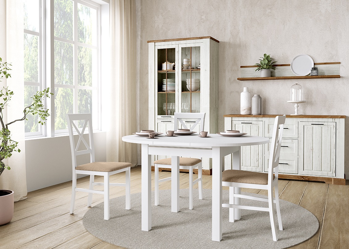 Stół rozkładany Aurora to wyjątkowy mebel, który spełni oczekiwania nawet najbardziej wymagających użytkowników. Wykonany z wysokiej jakości płyty wiórowej laminowanej, zapewnia solidność i trwałość na lata. Jego okrągły kształt nadaje wnętrzu elegancji i harmonii, będąc zarazem praktycznym rozwiązaniem w każdej przestrzeni.