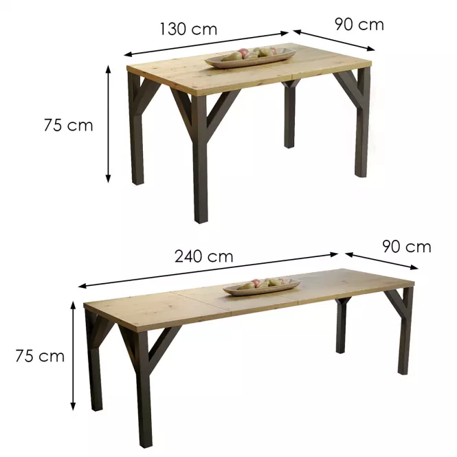 Metalowy stelaż dodaje stołowi stabilności i wyrazistego, nowoczesnego wyglądu. To stylowe połączenie trwałości metalu z estetyką płyty wiórowej sprawia, że stół Baltika wpasowuje się idealnie w aranżacje w stylu loftowym, industrialnym, jak i minimalistycznym. Solidna konstrukcja zapewnia stabilność i trwałość, co sprawia, że stół posłuży przez lata, wciąż prezentując się elegancko i nowocześnie.
