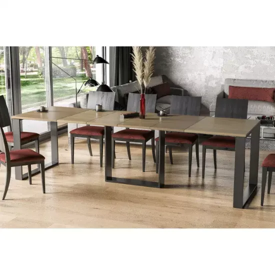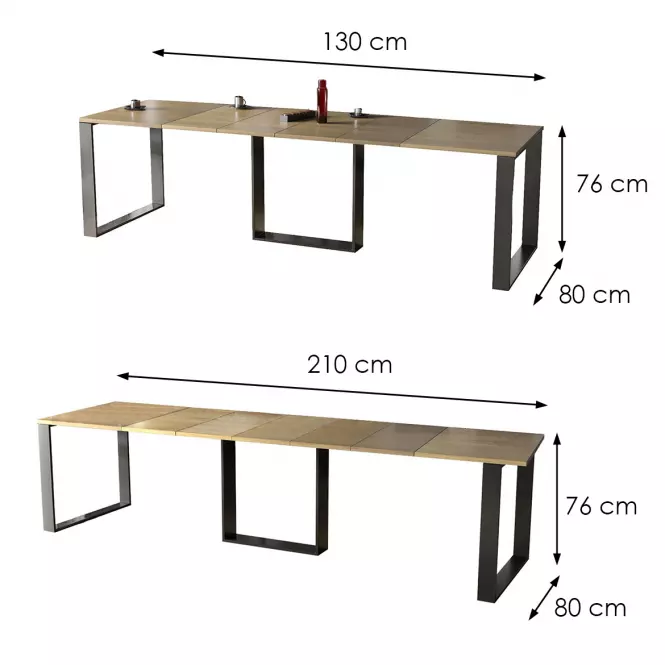 Jednym z kluczowych atutów stołu Borys-210 jest jego rozkładany blat, który umożliwia wygodne dopasowanie wielkości stołu do bieżących potrzeb. Dzięki tej funkcji stół sprawdzi się doskonale zarówno podczas codziennych posiłków w gronie najbliższych, jak i podczas większych przyjęć, kiedy potrzeba więcej miejsca dla gości. Mechanizm rozkładania jest solidnie wykonany i łatwy w obsłudze, co pozwala na szybkie i sprawne powiększenie powierzchni użytkowej.