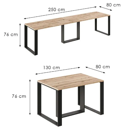 Stół rozkładany Borys 250 w kolorze dąb evoke to elegancki i funkcjonalny mebel, idealny do nowoczesnych wnętrz. Dzięki możliwości rozłożenia blatu z 130 cm do 250 cm, doskonale sprawdzi się zarówno podczas codziennych posiłków, jak i większych spotkań rodzinnych.