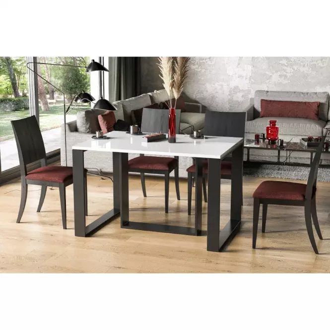 Stół Borys to również wyraz nowoczesnej estetyki, podkreślonej przez stalowy, solidny stelaż, który zapewnia stabilność oraz wytrzymałość, a także dodaje charakterystycznego, loftowego sznytu. Stalowy stelaż w połączeniu z matową powierzchnią MDF tworzy harmonijną całość, doskonale wpisując się w minimalistyczne wnętrza, ale również świetnie komponując się z bardziej eklektycznymi aranżacjami, gdzie liczy się elegancja i prostota. Dodatkowo, metalowa konstrukcja stelaża zapewnia trwałość, co czyni stół odpornym na codzienne użytkowanie i wytrzymałym na długie lata.