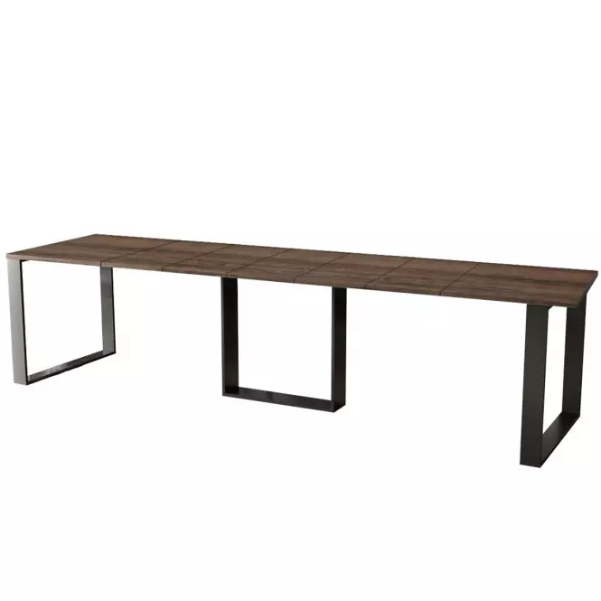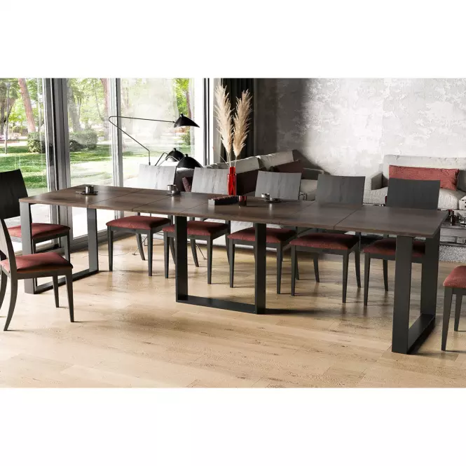 Stół opiera się na metalowym stelażu, który nie tylko zapewnia stabilność i wytrzymałość, ale także dodaje nowoczesnego, industrialnego akcentu. Takie połączenie materiałów sprawia, że stół idealnie wpisuje się w różnorodne aranżacje wnętrz – od nowoczesnych i minimalistycznych, przez klasyczne, aż po te z nutą industrialnej surowości.