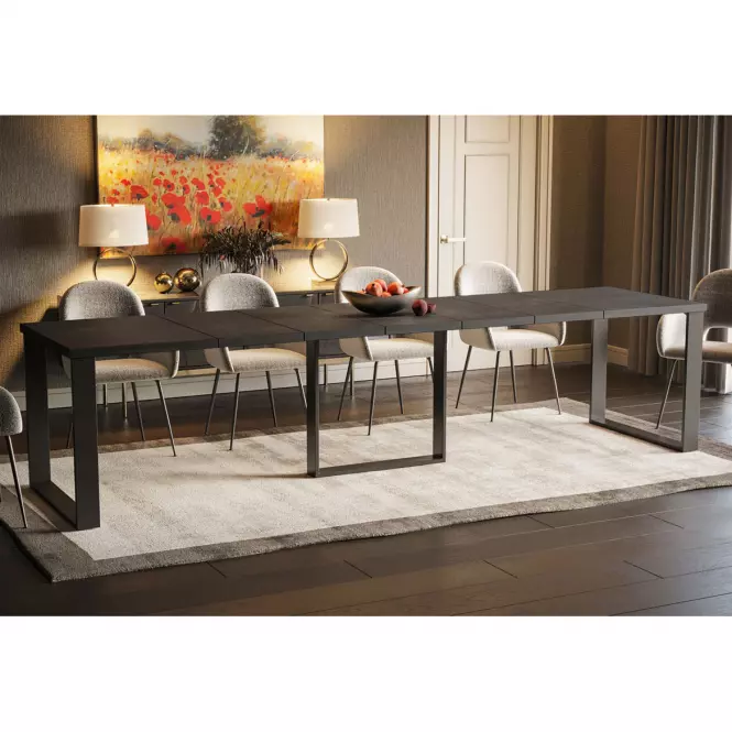 Stół rozkładany Borys max-250 w kolorze betonu ciemnego to doskonały wybór dla wnętrz w stylu nowoczesnym i industrialnym. Wyjątkowy szary odcień blatu o fakturze przypominającej surowy beton nadaje mu niepowtarzalny, loftowy charakter, który doskonale komponuje się z minimalistycznymi przestrzeniami, wprowadzając do nich elegancką nutę surowości i nowoczesności. Blat wykonany z płyty wiórowej o matowym wykończeniu zachowuje naturalny, ponadczasowy wygląd, a także jest odporny na codzienne użytkowanie, co gwarantuje trwałość i estetykę przez lata.