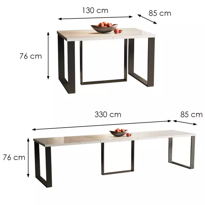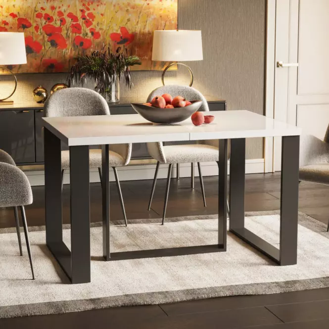 Prostokątny kształt blatu oferuje dużą przestrzeń do codziennego użytkowania, a możliwość rozłożenia stołu to ogromna zaleta, szczególnie podczas przyjęć czy spotkań w większym gronie. Dzięki tej funkcji stół Borys max-330 z łatwością dostosowuje się do różnych sytuacji, zapewniając miejsce dla wszystkich gości. Mechanizm rozkładania jest intuicyjny i solidnie wykonany, co sprawia, że stół można szybko i wygodnie powiększyć.