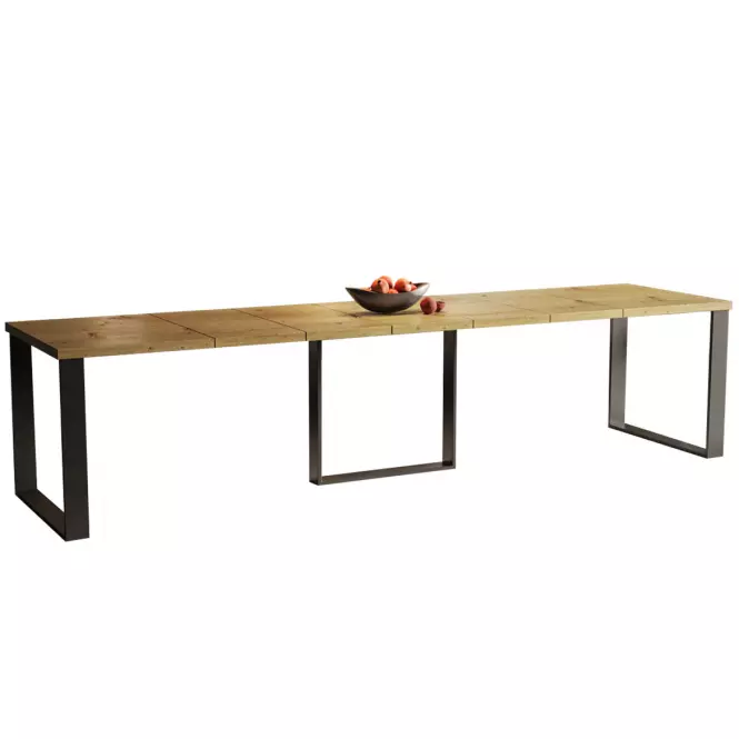 Metalowy stelaż dodaje stołowi nowoczesnego, industrialnego charakteru, podkreślając jego współczesny design. Konstrukcja ta gwarantuje nie tylko wytrzymałość, ale również stabilność, nawet przy maksymalnym rozłożeniu. Solidność stołu, który waży 113 kg, świadczy o jego wyjątkowej jakości i stabilności, co jest szczególnie ważne podczas użytkowania w większym gronie.