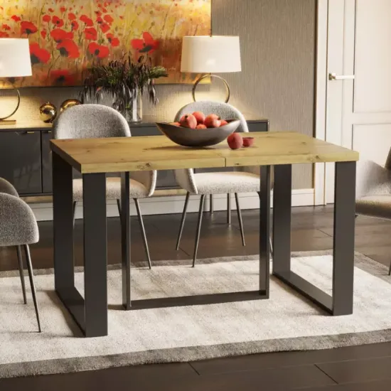 Prostokątny kształt blatu oferuje dużą przestrzeń do codziennego użytkowania, a możliwość rozłożenia stołu to ogromna zaleta, szczególnie podczas przyjęć czy spotkań w większym gronie. Dzięki tej funkcji stół Borys max-330 z łatwością dostosowuje się do różnych sytuacji, zapewniając miejsce dla wszystkich gości. Mechanizm rozkładania jest intuicyjny i solidnie wykonany, co sprawia, że stół można szybko i wygodnie powiększyć.