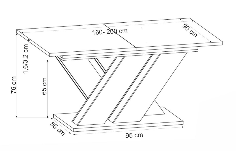Wyjątkowym elementem designu są nogi w kształcie litery "X", które nadają stołu Brands nowoczesnego, a zarazem solidnego wyglądu.