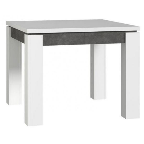 Połączenie białego połysku z betonowym wykończeniem sprawia, że stół pasuje do wnętrz o nowoczesnym, minimalistycznym charakterze. Kwadratowy blat oraz rozkładana funkcja zapewniają maksymalną praktyczność, a eleganckie wykończenie w połysku podkreśla estetykę mebla.