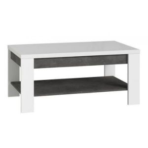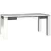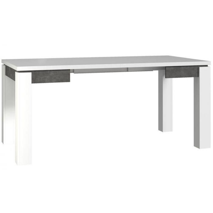 Blat stołu wykonany jest z płyty wiórowej wykończonej na połysk, co nadaje stołowi elegancki, nowoczesny wygląd. Matowe elementy w kolorze beton oraz białe połyskujące powierzchnie tworzą harmonijną, minimalistyczną kompozycję, która doskonale wpisuje się w różnorodne aranżacje wnętrz – od klasycznych po loftowe i skandynawskie.