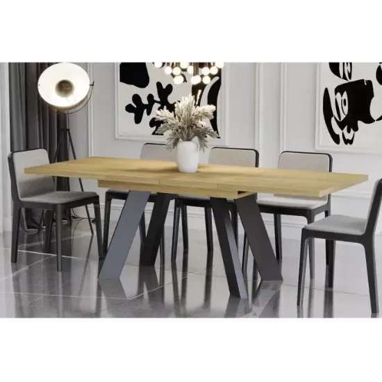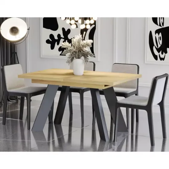 Stół Como-210 jest wyposażony w solidny blat wykonany z wytrzymałej płyty wiórowej o matowym wykończeniu, które dodaje subtelnej elegancji i jest odporne na codzienne użytkowanie. Matowa powierzchnia sprawia, że stół jest łatwy w pielęgnacji i nie uwidacznia odcisków palców ani drobnych zarysowań, co czyni go idealnym wyborem dla rodzin i osób ceniących wygodę.