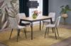 Blat stołu wykonany z trwałej płyty meblowej laminowanej w kolorze dębu wotan nadaje mu naturalnego i przyjemnego dla oka wyglądu, podkreślając charakter pomieszczenia. Nogi stołu wykonane z solidnego drewna litego w kolorze czarnym dodają mu nowoczesnego charakteru, tworząc harmonijną kompozycję.