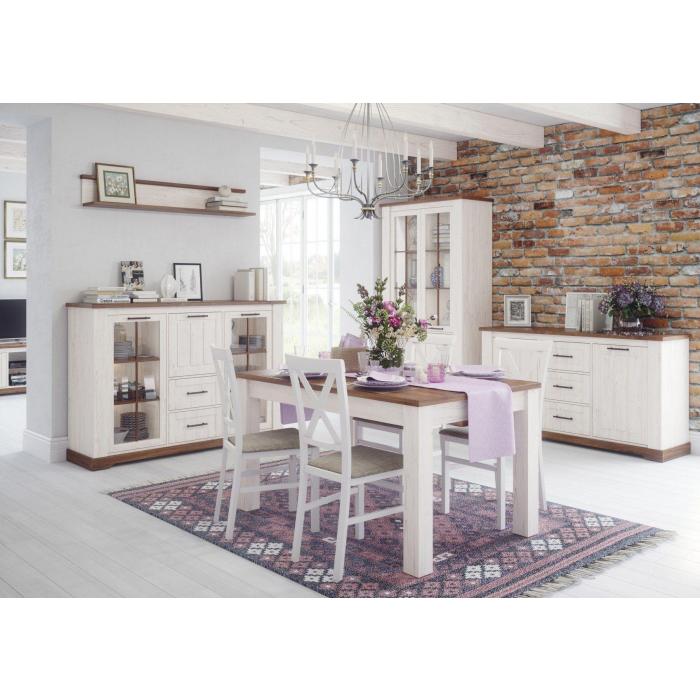 Stół rozkładany Country 40 w nietypowym wydaniu kolekcji Country. Jeśli marzysz o wnętrzu w stylu prowansalskim, jeśli lubisz klasyczne bryły i zdobienia to ta kolekcja jest właśnie dla Ciebie. Niezwykle stylowy mebel, który sprawdzi się w pomieszczeniach w stylu prowansalskim oraz klasycznym. Idealna kompozycja kolorystyczna dębu stirling z sosną andersen nadaje meblowi lekkości. Stół pasuje do każdego salonu lub jadalni.