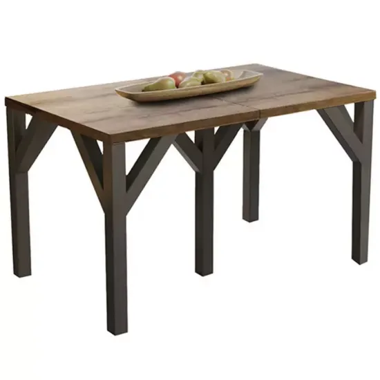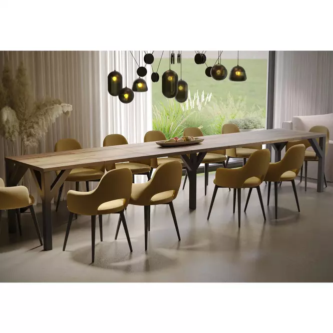 Solidny metalowy stelaż zapewnia stabilność i doskonale komponuje się z nowoczesną estetyką blatu, dodając meblowi odrobinę industrialnego charakteru. Tego typu połączenie materiałów tworzy harmonijną całość, która świetnie sprawdzi się w przestrzeniach utrzymanych zarówno w stylu minimalistycznym, jak i w bardziej eklektycznych aranżacjach. Metalowe akcenty podkreślają wytrzymałość stołu, a jego masywna konstrukcja (waga wynosząca 99 kg) świadczy o stabilności, nawet przy maksymalnym rozłożeniu.